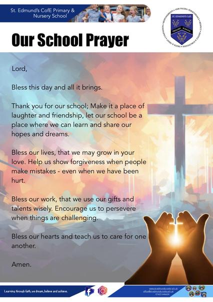 We are delighted to introduce our new school prayer, which has been thoughtfully chosen by our staff and children. This prayer reflects our commitment to fostering a positive and nurturing learning environment where our pupils can thrive.